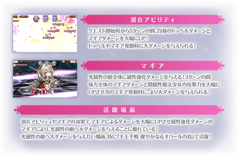 ・魔法少女のスキル内容・効果は事前告知の上、変更する場合があります。