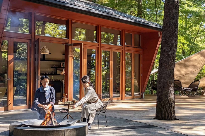 河口湖を望む丘陵に溶け込むように建つ、日本初のグランピングリゾート。焚き火を眺めながら過ごすひと時、広大な赤松の森の中で愉しめる体験型の食事、自然の中で身体を動かす爽快感。常に屋外で快適に過ごせる環境の中、四季を通して新しい価値を提供します。
