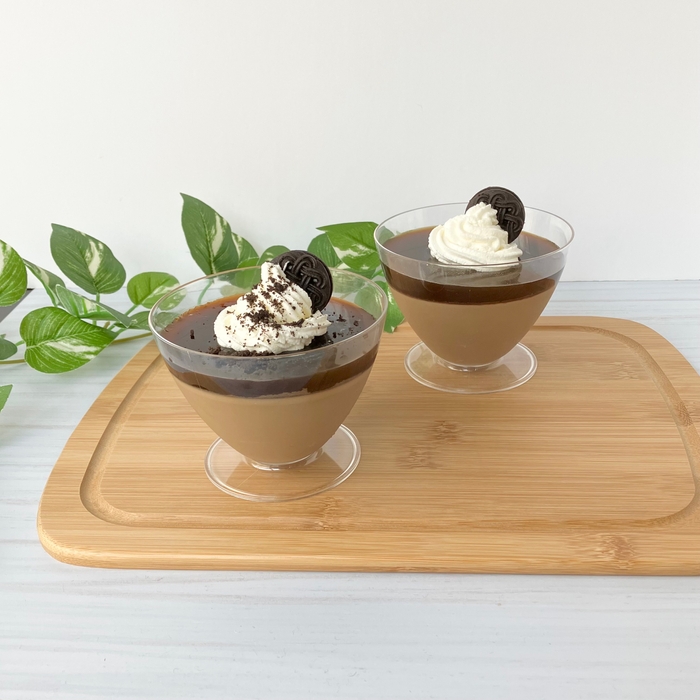 ④ グラスやカップに注ぎ入れ、冷蔵庫で冷やし固めたら、できあがり!!