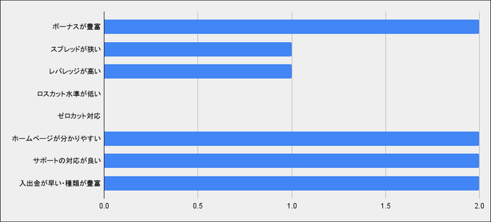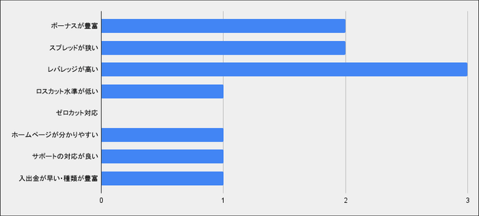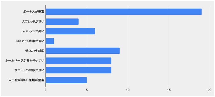 TitanFXはボーナスがないため、選ぶ人はいませんでしたが、「スプレッドが狭い」にチェックをした人がほとんどでした。