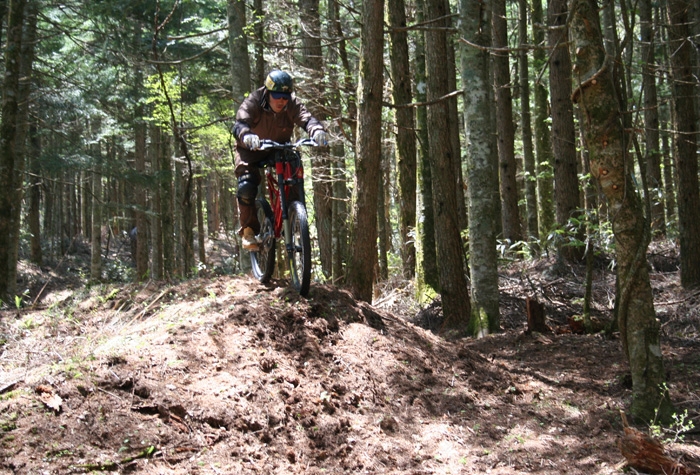 スタート地点の山頂までリフトで上がり、林間やゲレンデの斜面を下ります。幅30~40mの芝生のコース、脇がバンク(土手)になった林間コース、急斜面・障害物の多い上級者向け林間コースがあります。昨年好評だった林間の馬車道DHコース、さらにトレイルDHコースもリニューアルし、より戦略的に楽しめるコースになりました。
