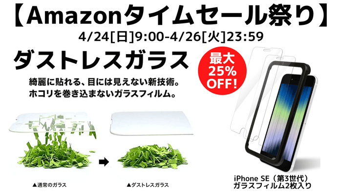 【Amazonタイムセール祭り 最大25%OFF】最新のiPhoneに対応したホコリの入らないダストレスガラスフィルム