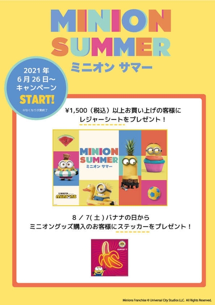 【8月7日はバナナの日!!今年の夏も黄色いあいつらが大暴れ!!】2021年6月26日(土)~開催!ミニオンキャンペーン @ キデイランド33店舗