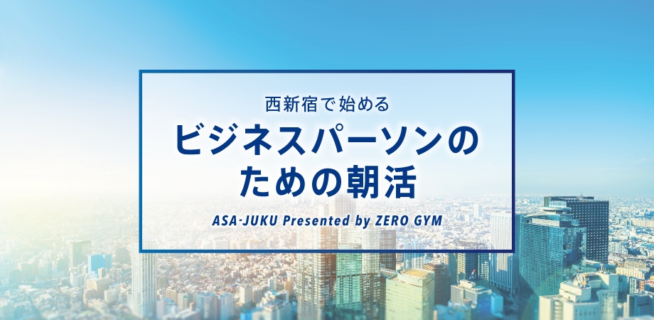 世界一の乗降者数を誇る東京・新宿駅。新宿駅西口から徒歩5分、多数の企業が拠点を構える西新宿に位置するZERO GYM新宿店では、この度朝の空き時間を活用し、ビジネスパーソンを対象とした朝活プログラムの提供を開始しました。朝活のテーマはビジネスに関することから、話し方やコミュニケーション術、英語、健康に関するものなど様々です。出社前のひと時をビジネスや生活の質を高めるインプットの時間に、是非ご活用ください。