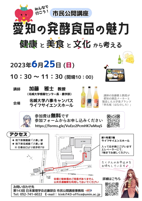 市民公開講座「愛知の発酵食品の魅力:健康と美食と文化から考える」(第 143 回日本薬理学会近畿部会)
