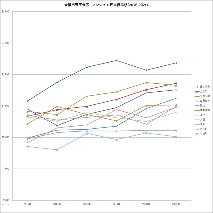 「マンションレビュー」のデータで見る「大阪都心6区のマンション相場推移5年」 中古マンション相場の町名ランキングを発表