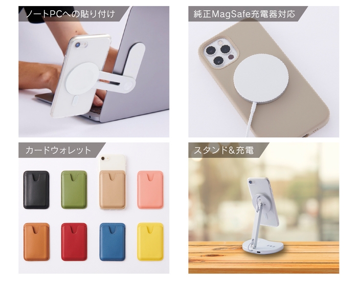 登場から2年が経ち、対応アクセサリーもさまざまな種類が展開されています。設置面がずれる心配のないワイヤレス充電器のみならず、ナビゲーションに便利な車載マウントホルダーや、スタンドなどを、磁石で簡単に取り付けられるので、装着する手間が省け大変便利なアイテムです。