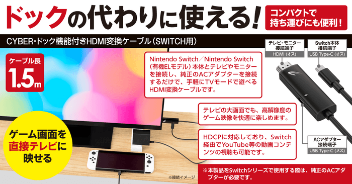 『CYBER・ドック機能付きHDMI変換ケーブル(SWITCH用)』の特長