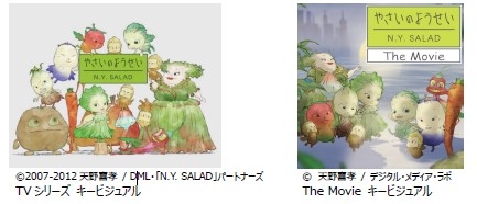 『 やさいのようせい N.Y.SALAD 』は、天野喜孝氏の画集「N.Y.SALAD」をアニメ化した作品です。ニューヨークのとあるキッチンを舞台に、個性豊かな野菜の妖精たちが楽しく遊び、そして愛らしく笑う表情が、天野氏独特の鉛筆素描風の描線と淡い色彩によってメルヘンチックに描かれています。制作にあたっては製作委員会方式が採られ、加賀電子、DMLに加えて、株式会社NHKエデュケーショナル等が参画しました。