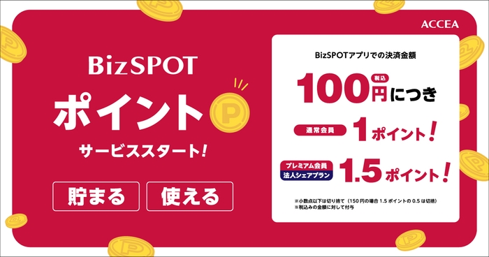 BizSPOTアプリでの決済金額100円(税込み)ごとに1ポイント