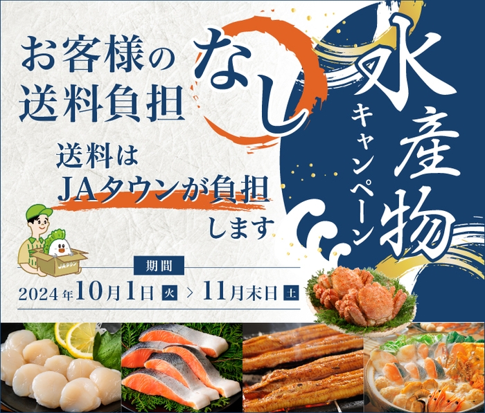 10月・11月の「JAグループ国消国産月間」にあわせ、「JAタウン」では“継続的に国産農畜産物を購入してもらうきっかけをつくる”ことを目的に、対象商品を「お客様送料負担なし」で購入できるキャンペーンを実施します。