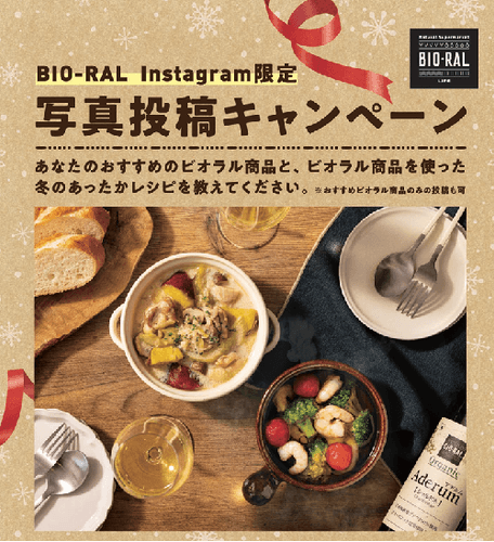 (※2)2023年12月1日~31日の1ヵ月間、BIO-RALの公式Instagram(bioral_east/bioral_west)のフォロワーに向け、『おすすめのビオラル商品』または『ビオラル商品を使った冬のあったかレシピ』の画像を「#この冬食べたいおすすめ」のハッシュタグを記載し投稿を募集。