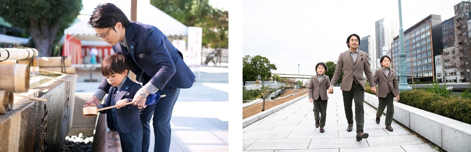 「おやコーデ」では「お父さんとの思い出が男の子を強くする。世界にひと組だけのオーダーメイドを通じて」というコンセプトのもと、ペアオーダースーツ・ジャケット等を仕立てています。いつの時代も男の子は『パパと同じがいい』と格好をつけたがるもの。私たちはそんな男の子の声に耳を傾け、親子でお揃いのスーツをつくっていく卒業式・入学式に最適なペアオーダースーツプランを提供いたします。卒業式や入学式、七五三など節目となる記念日にお揃いのオーダースーツやジャケットを仕立て、プロのカメラマンを派遣し記念撮影までを手配。体験を通じ、家族の絆を深め、形に残すサービスです。他にもコロナ禍において減少する紳士服需要を喚起し、お子様と過ごすお出かけファッションとしてジャケット×パンツスタイルの提案や、成人式や入社式、三世代(孫・子・親)など、幅広い年代の方にご利用いただいています。
