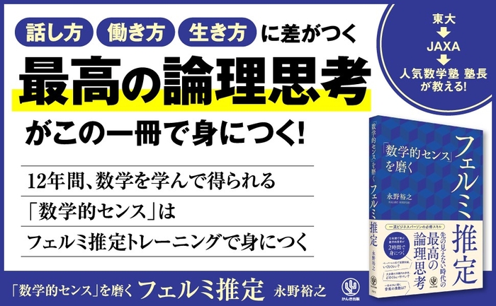 株式会社かんき出版(本社:千代田区 代表取締役社長:齊藤龍男)は、『「数学的センス」を磨く フェルミ推定』(永野 裕之/著)https://kanki-pub.co.jp/pub/book/details/9784761276737を2023年5月24日より全国の書店・オンライン書店等(一部除く)で発売いたします。