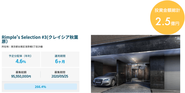 Rimple’s Selection#3応募総額2.5億円 不動産投資型クラウドファンディング「Rimple」