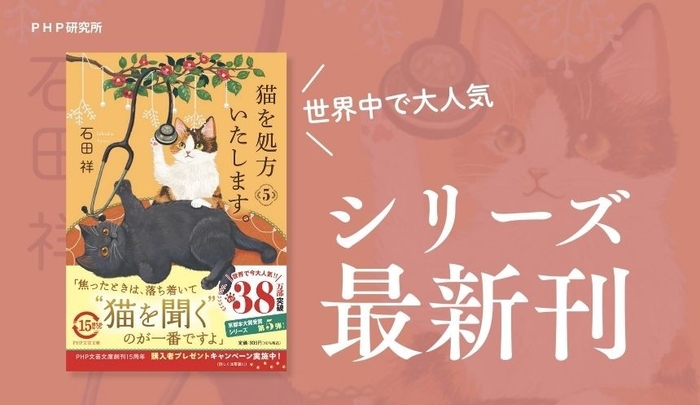 株式会社PHP研究所(京都市南区・代表取締役社長 瀬津要)は、2025 年10月10日に『猫を処方いたします。5』(石田祥 著/税込 935円)を発売します。「猫を処方いたします。」シリーズは、海外からの翻訳オファーが33言語に広がり、国内外で累計58万部を突破。グローバルに読者を魅了しています。