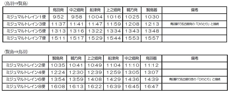 また、今回の「ミジュマルトレイン」の一部の列車は、名古屋駅~鳥羽駅間の臨時特急「ひのとり」と鳥羽駅で接続します。