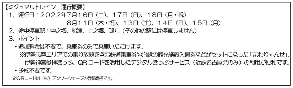 夏休みに「ミジュマルトレイン」を臨時列車として 鳥羽駅~賢島駅間で運行します