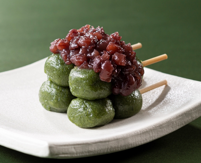 香り高い国産よもぎを使用。北海道産粒餡のほど良い甘さとよもぎの香りが相性抜群の草団子です。