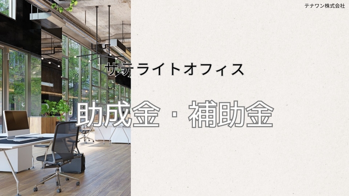 地方自治体では、サテライトオフィス設置の補助金・助成金制度があり、サテライトオフィスの利用促進を促しているところがあります。