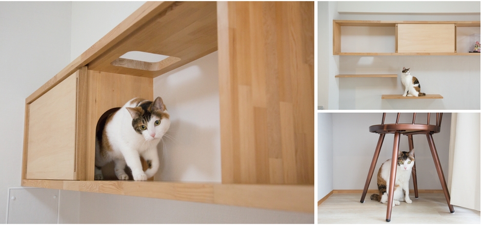 ● 最初は新しい部屋に慣れるか心配でしたが、慣れてくつろいでいる猫の姿がすぐに見れました。猫の事を考えて作ったオリジナル家具でくつろぐ猫のかわいい写真を家族で撮ってシェアしています。(30代 男性)