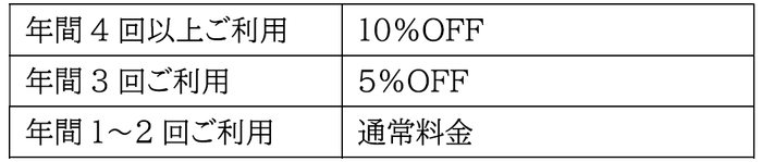 貸切利用基本料金から利用回数に応じて最大10%割引