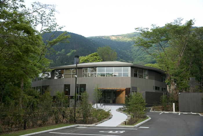 当館の設計を手掛けたのは小田急新型ロマンスカーや箱根登山鉄道の車両デザインをはじめ、「ポンピドゥー・センター」や、「関西国際空港旅客ターミナルビル」「ベルギー大使館」の建築デザインなどにたずさわってきた日本を代表する建築家の岡部憲明氏で、自然の勾配を残し、敷地の形を活かすように建物が配置されています。滞在中のお客様の行動を考えて、集中したり寛いだり1日の動きも異なることから、どこにいてもリラックスしながら考えることができる環境づくりを心掛けて作られています。