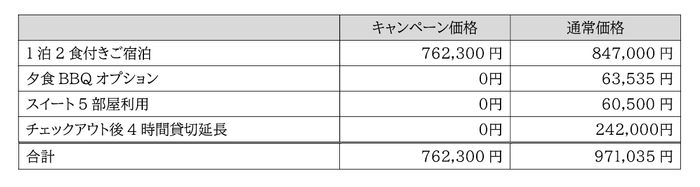 このキャンペーンでは年間のご利用回数に応じて最大10%の割引や露天風呂付スイートや夕食時のBBQオプション、チェックイン前後の追加ご利用代金を無料でご提供します。