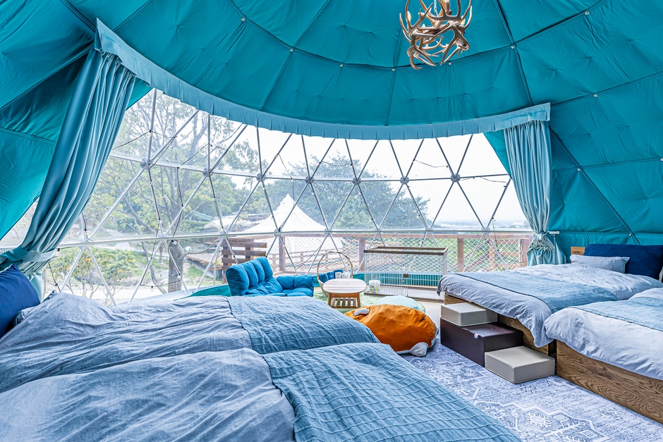 うきはの丘からパノラマ景色でRELAX&DETOXが出来る身近なリゾートとして、建築家がディレクションした夜景も楽しめるサウナ、こだわりの家具を設置したドーム型テント、ワンちゃんも寝泊りできるテントサイトもご用意しており、ケージやロングリード、食器、トイレシートなど犬用アメニティもあります。
