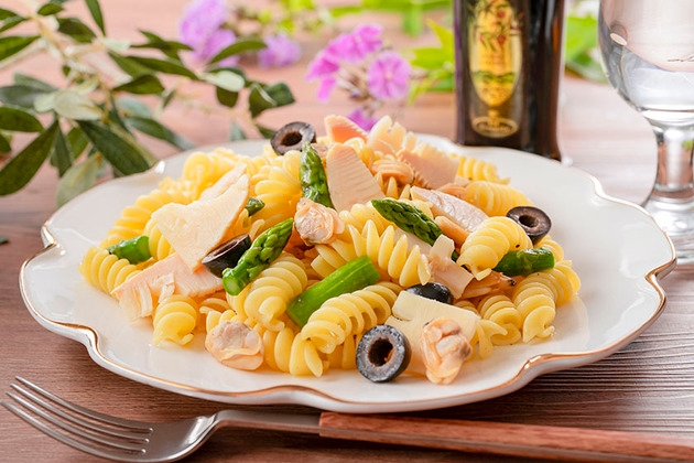 春を感じる大地や海の恵みを使ったオイルベースのショートパスタは、キリッと冷えた白ワインを合わせて。