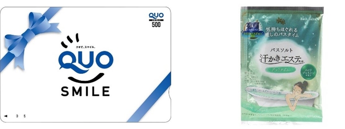 「500円分のQUOカード」や「バスソルト」をプレゼント!