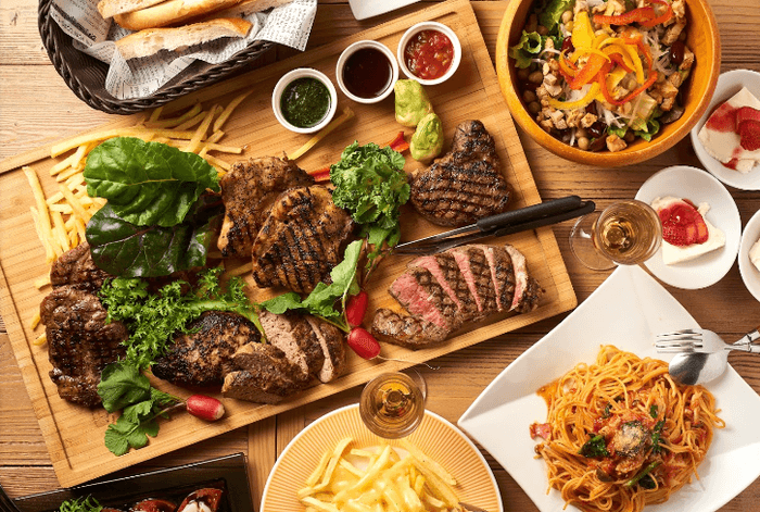 絶品の熟成肉料理でテーブルも華やかです!グリル料理をメインにビュッフェ形式で楽しんでくださいね。