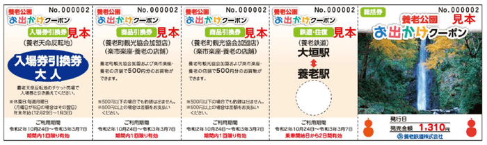 養老鉄道では、養老公園へのお出かけに便利な乗車券や養老天命反転地の入場券引換券などがセットになった「養老公園お出かけクーポン」を発売いたします。