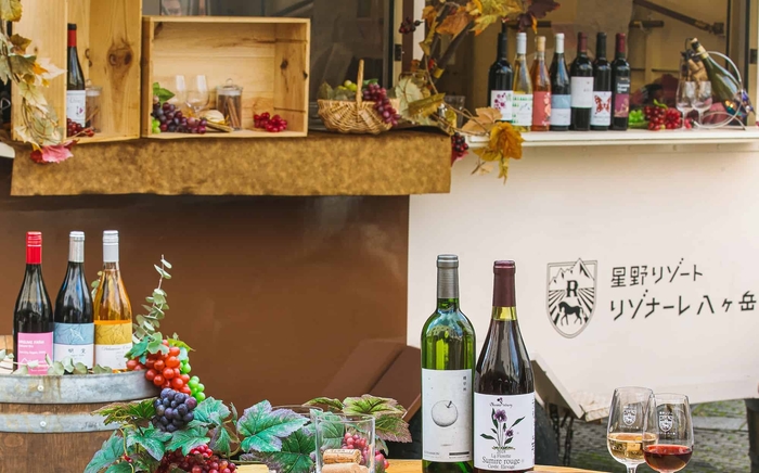 自然豊かな八ヶ岳エリアのリゾートホテル「星野リゾート リゾナーレ八ヶ岳」では、2021年11月3日~11月30日に、メインストリート「ピーマン通り」で「焚火ワインサロン」をオープンします。ここは、秋の澄んだ空気の中でぱちぱちと爆ぜる薪の音をBGMに、ワインやおつまみを片手に焚火を囲み過ごせる空間です。ピーマン通りのキッチンカーでは、11月3日に解禁する「山梨ヌーボー」や長野県のワインの新酒を日替わりで提供します。ワインと一緒に楽しめる焼き栗などのお菓子も用意。高原リゾートの深まる秋を感じながら、特別なひとときを過ごせます。