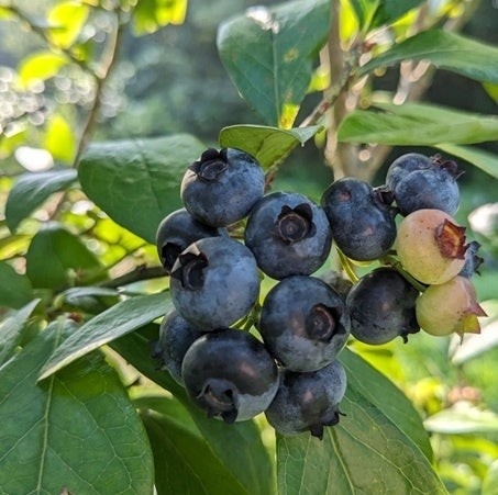ブルーベリーは農薬、化学肥料、除草剤を使わずに栽培していて全て手摘み。収穫シーズンのみ販売している生食用、ジャムにしたら最高に美味しい酸味のある大粒のもの、甘さのある小粒をジュース用にと分けて収穫しております。