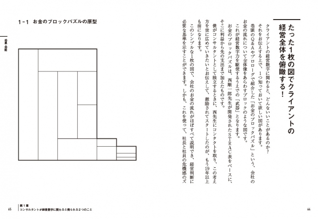 その武器になるのが、「お金のブロックパズル」というツール。「売上」「粗利」「固定費」「利益」など、たった7つの要素から構成されるもので、著者が20年近くにわたり活用し、クライアントの業績を次々にアップさせてきた、視覚的なアプローチ法です。