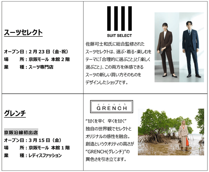 京阪モール 2024年春のリニューアル ~「スーツセレクト」や「musi-vege+cafe」など8店舗が続々NEW OPEN。従業員休憩室もリニューアルいたします~