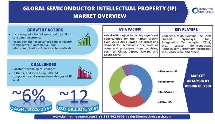 リサーチ・ネスターの一部門であるケネス・リサーチは最近、「半導体知的財産(IP)市場:グローバル需要分析と機会見通し2031」と題する調査レポートを発表し、設計IP、IPソース、IPコア、エンドユーザー、および地域別の市場セグメンテーションの観点から半導体知的財産(IP)の詳細な概要を提供しています。