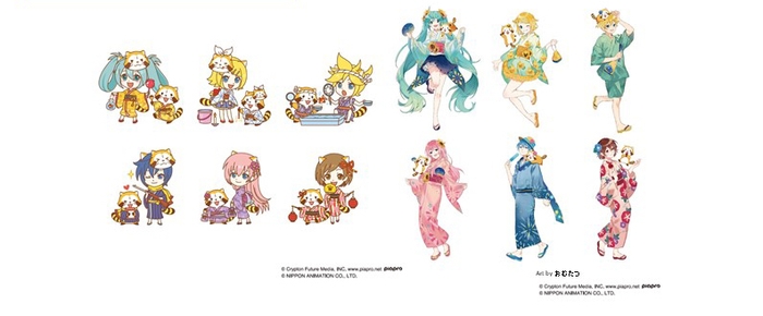 「ラスカル」が40周年を迎えたことを記念して2017年に実現したコラボレーションの好評を受け、同コラボレーションは今年で4年目を迎えます。今年は「縁日」をテーマに、 「初音ミク」をはじめ、「鏡音(かがみね)リン・レン」 「巡音(めぐりね)ルカ」 「KAITO(かいと)」 「MEIKO(めいこ)」と「ラスカル」がおそろいの浴衣を身に着け、テーマである「縁日」を楽しむアートを作成。また「花火大会」をテーマに、ピアプロキャラクターズと「ラスカル」のコラボレーションイラストをイラストレーターの「おむたつ」氏に描き下ろしていただきました。花と花火の柄が華やかな浴衣・甚兵衛スタイルのイラストです。「マジカルミライ 2020」in OSAKAでは、各イラストを使用した商品の先行販売を実施いたします。