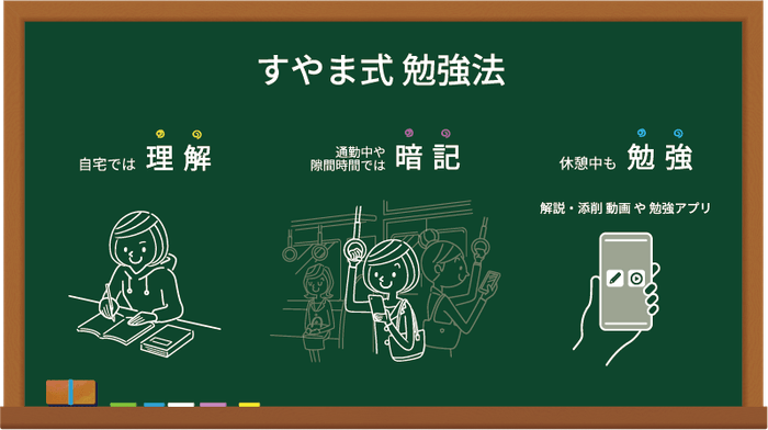 まず、勉強する場所で内容を分けていました。自宅の机に向かう夜の時間は、問題集の解説を読み込むなど「理解」に集中します。そして、そこで得た知識を、通勤中などの隙間時間にアプリで繰り返し復習し、「暗記」として定着させる。このサイクルを徹底していました。