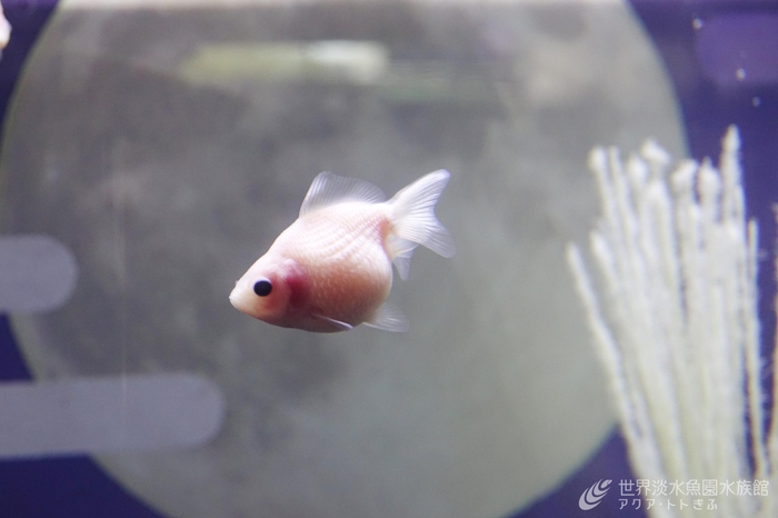 月見団子のような白い金魚が泳ぎます
