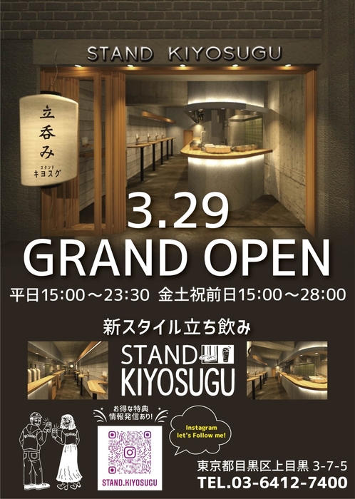 「大手メーカーと共同開発」東京・中目黒に 令和の新スタイル立ち飲み 『STAND KIYOSUGU』を3月29日オープン! ~おばんざい×スタイリッシュの立ち飲みFC~
