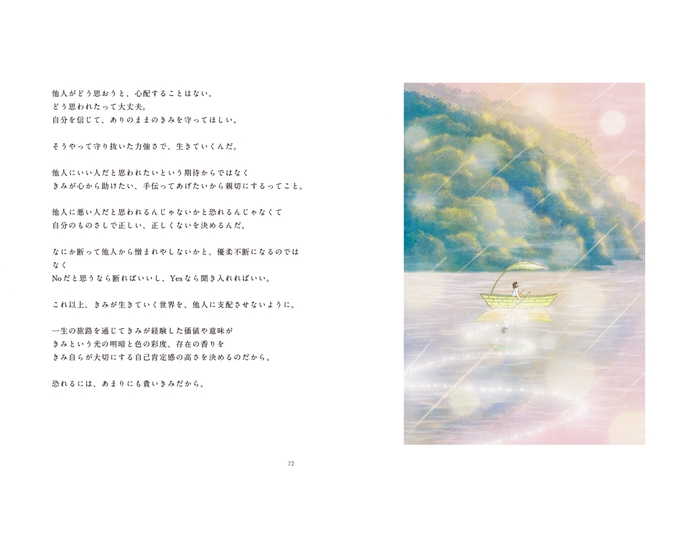 Part1からPart3まで、根底に共通するテーマは、わたしたちにとって「ほんとうに大切なこと」。そして、“誰もがありのままで大切な人なのだ”というメッセージ。「わたしたちはありのままで十分に愛され、また幸せになれる」、誰が読んでも共感でき、語りかけてくるような文章が心を癒やしてくれます。