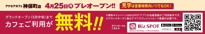プレオープンの4月25日よりアクセアカフェ神保町店の無料キャンペーンを行います。