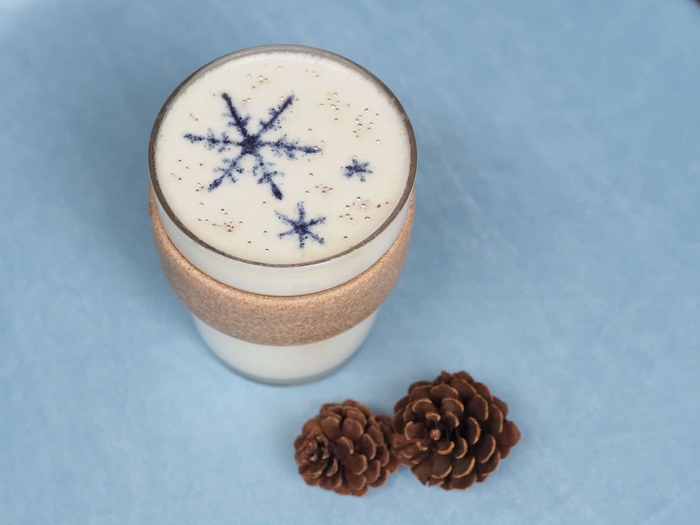 隣接するカフェでは「森の雪ココア」を、12月1日から3月5日までの期間限定で販売します。雪と氷をイメージし、真っ白なホワイトココアの上に、銀色のアラザンと青い雪の結晶のラテアートを施しました。ホワイトココアの優しい甘さは、スケート後のブレイクタイムにぴったりです。本リンクでは、氷上のベンチにドリンクをテイクアウトできます。