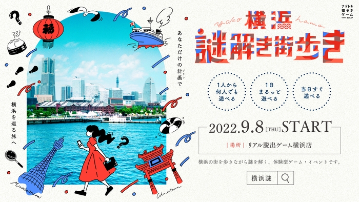 世界中で参加者を熱狂させる“リアル脱出ゲーム”を企画運営する、株式会社SCRAP(所在地:東京都渋谷区、代表者:加藤隆生)は横浜の街を歩きながら謎を解くナゾトキ街歩きゲーム『横浜謎解き街歩き』を2022年9月8日(木)より開催することを発表いたします。