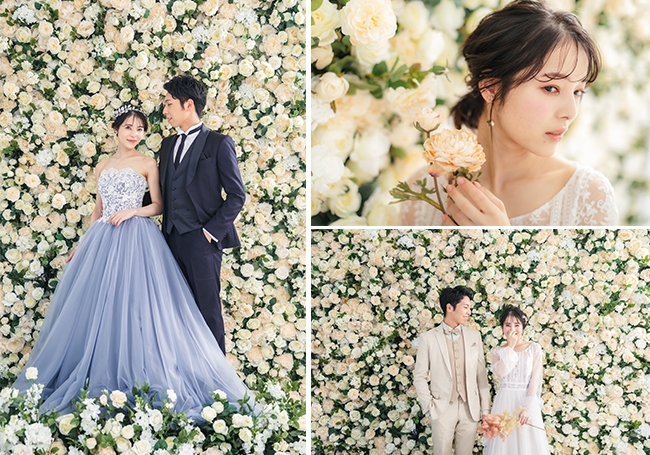 頭から足元まで一面お花に囲まれているからこそ、おふたりはもちろん、ご新婦様のソロショット、立ちポーズ、座ったポーズといったどのようなポーズでも、ロマンチックかつ華やかに演出します。