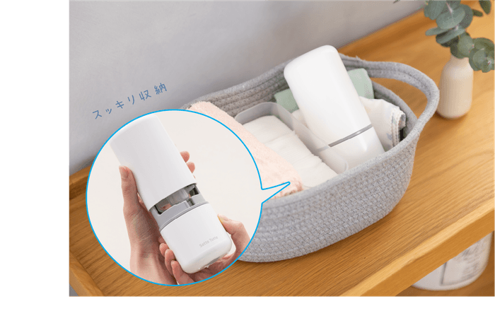 全ての部品が本体にスッキリ収納できるので、ほこりが付かず衛生的に保管できます。狭い場所への収納や外出先での使用に便利です。
