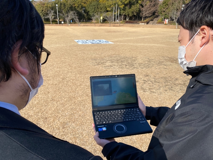 実証実験は大規模災害が発生したことを想定し行われ、リアルタイムで位置情報と映像が確認できるシステム「Hec-Eye」と「国産ドローン」を連携し活用しました。「Hec-Eye」は災害時複数拠点間でのドローンやスマートフォンの映像と位置情報をリアルタイムで共有・確認ができるため、従来よりも情報精度が上がり、より効率的で迅速な対応につなげられることをご確認頂きました。