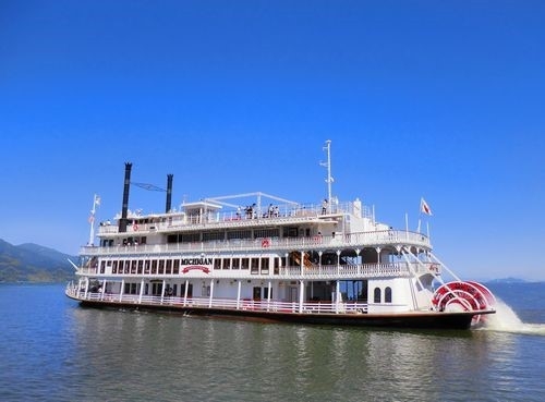赤いパドルが目印の「外輪船ミシガン」は、びわ湖を代表する大型観光船です。1982年に就航以来、これまでに延べ900万人以上の方にご乗船いただいております。最上階デッキからは、びわ湖南部の美しい景色や比叡山・坂本の街並みをご覧いただけます。また、レストランシップとして軽食から本格的なお料理まで楽しめるだけでなく、音楽ライブや観光案内も楽しむことができる